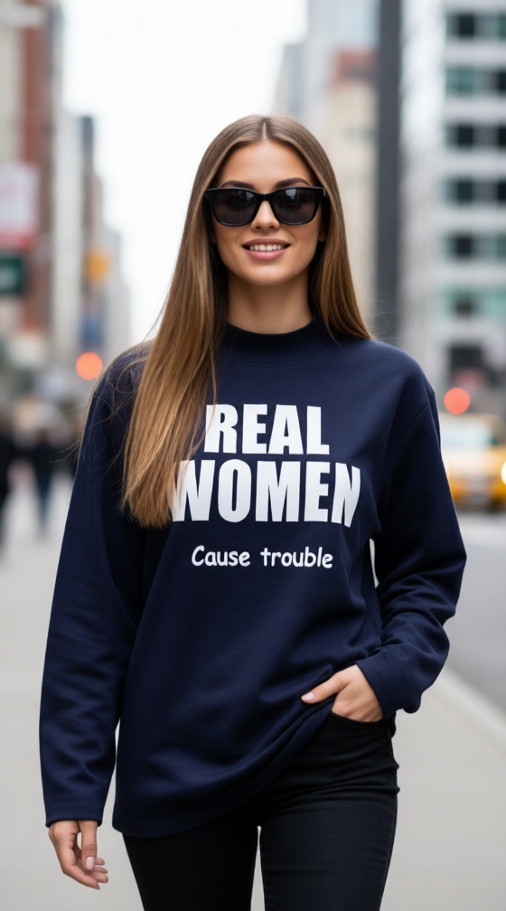 Donkerblauw shirt REAL WOMEN 'Cause trouble'