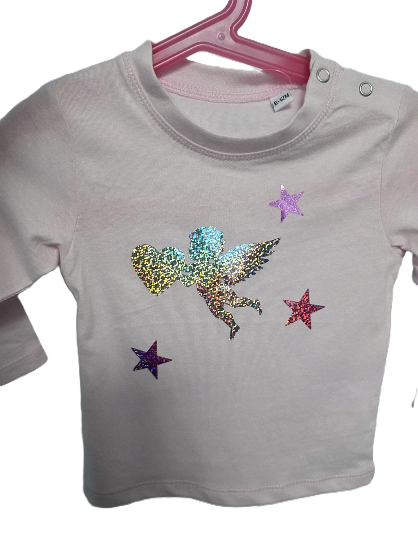 T shirt fuchsia 'Vlindertje' 6-12 maanden
