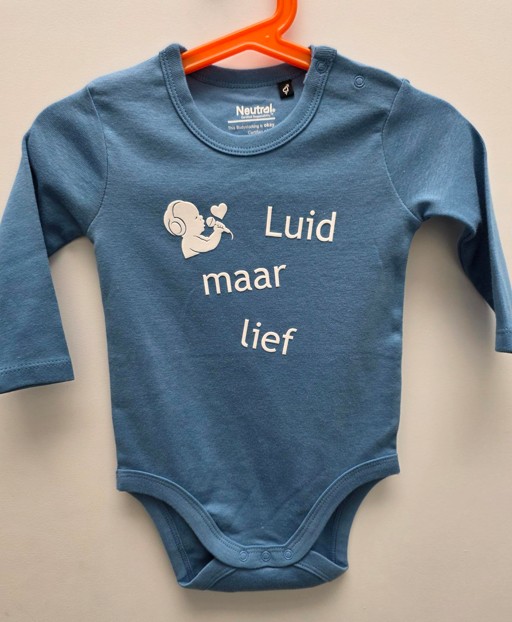 Babybody, lange mouwen, 100% katoen met zelf ontworpen print. Uniek stuk.