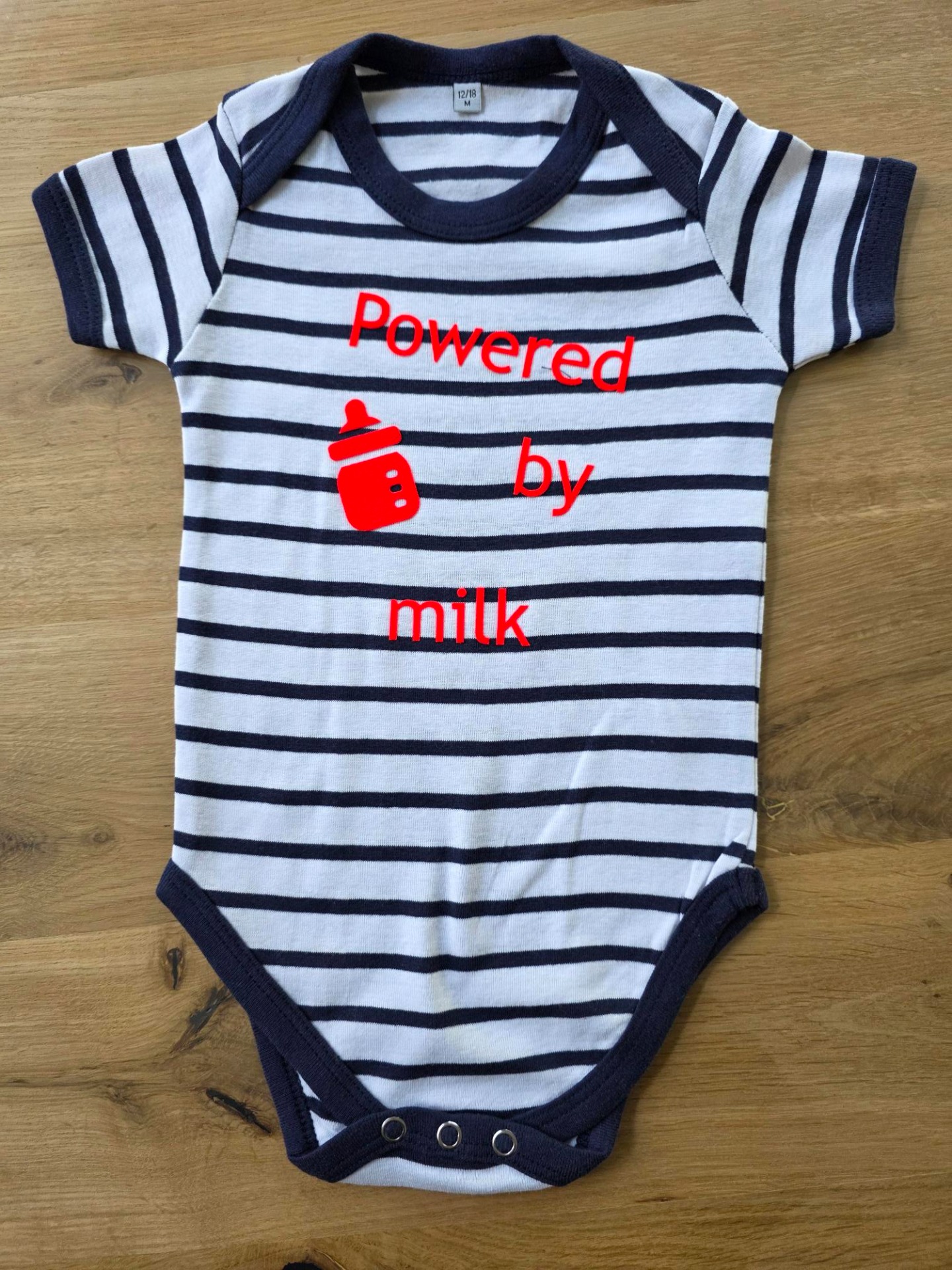 Babybody gestreept 'Powered by milk' 12 maanden
