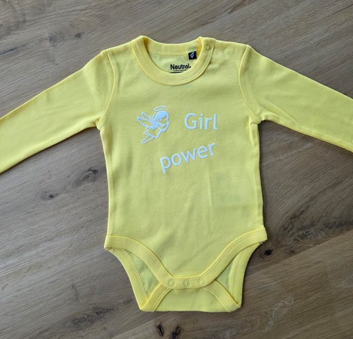 Babybody, lange mouwen, 100% katoen met zelf ontworpen print. Uniek stuk.