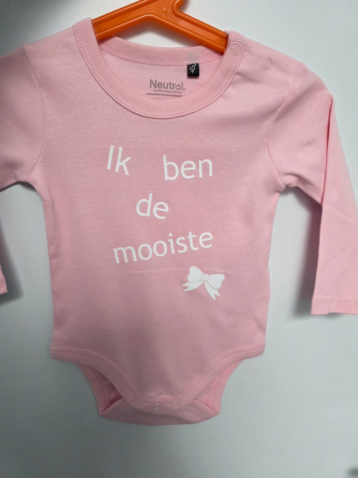 Babybody, lange mouwen, 100% katoen met zelf ontworpen print. Uniek stuk.