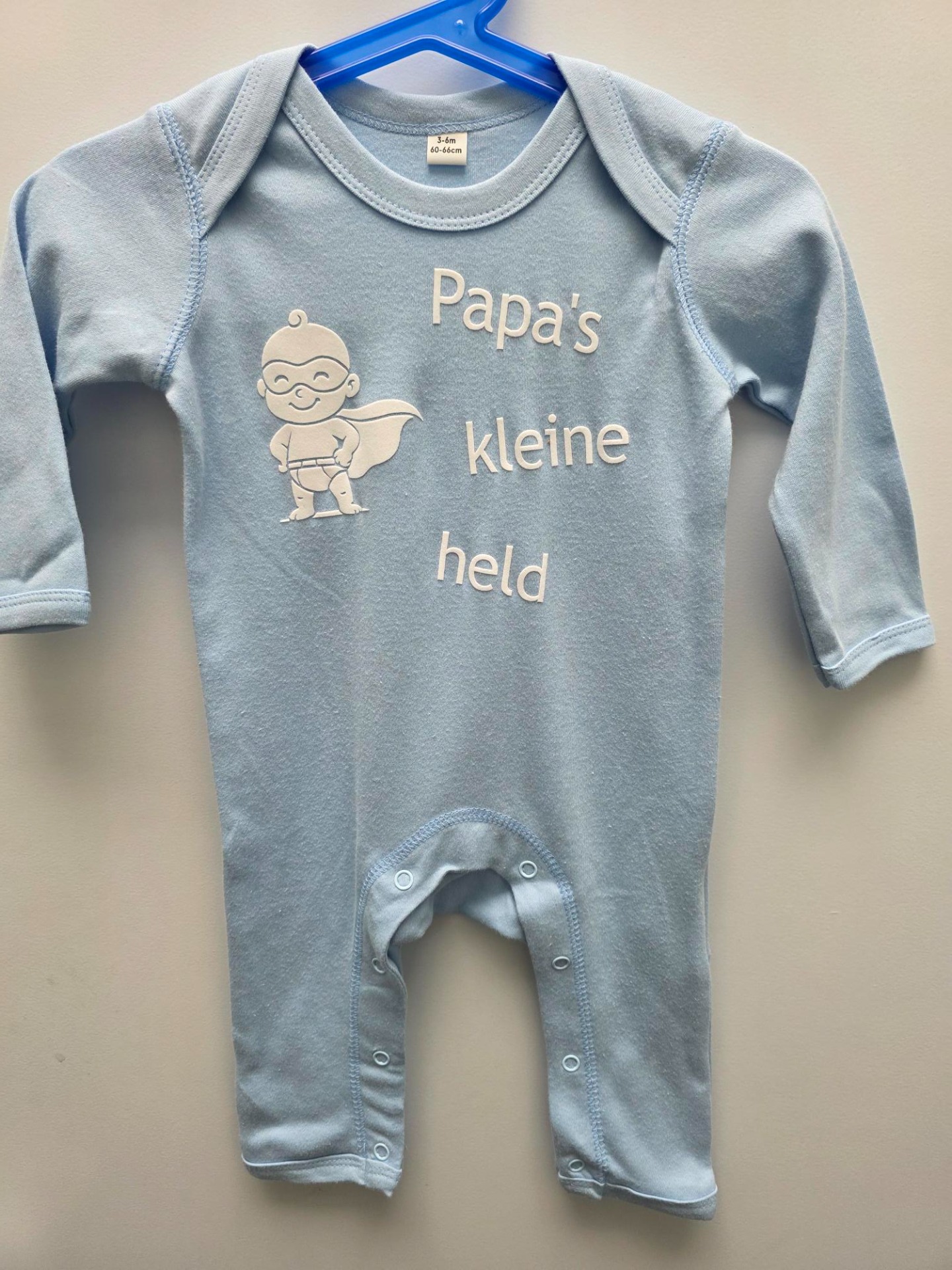 Blauwe pyjama, 100% katoen met zelf ontworpen print. Uniek stuk.