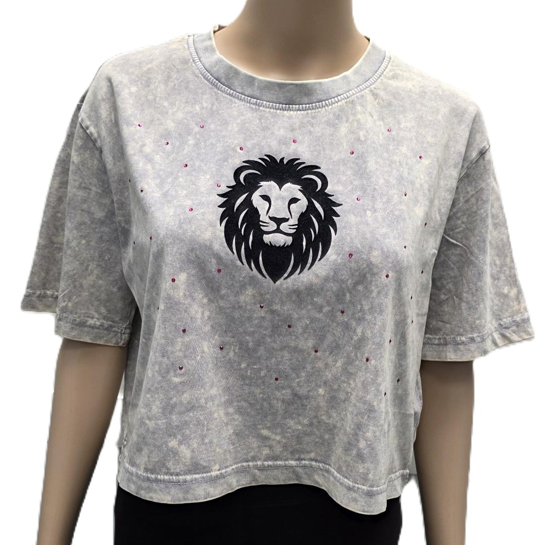 T shirt. Met zwarte flockprint en strasssteentjes. Maat: S