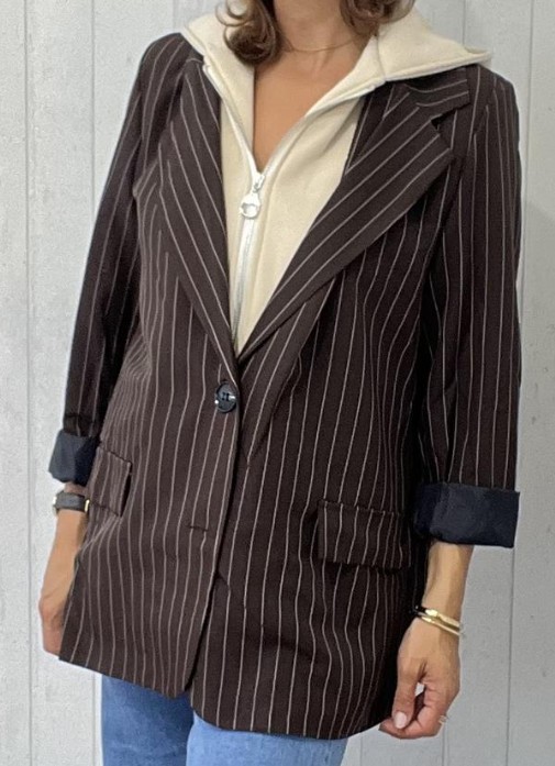 Bruine blazer met rits en kap. Maat 38-40