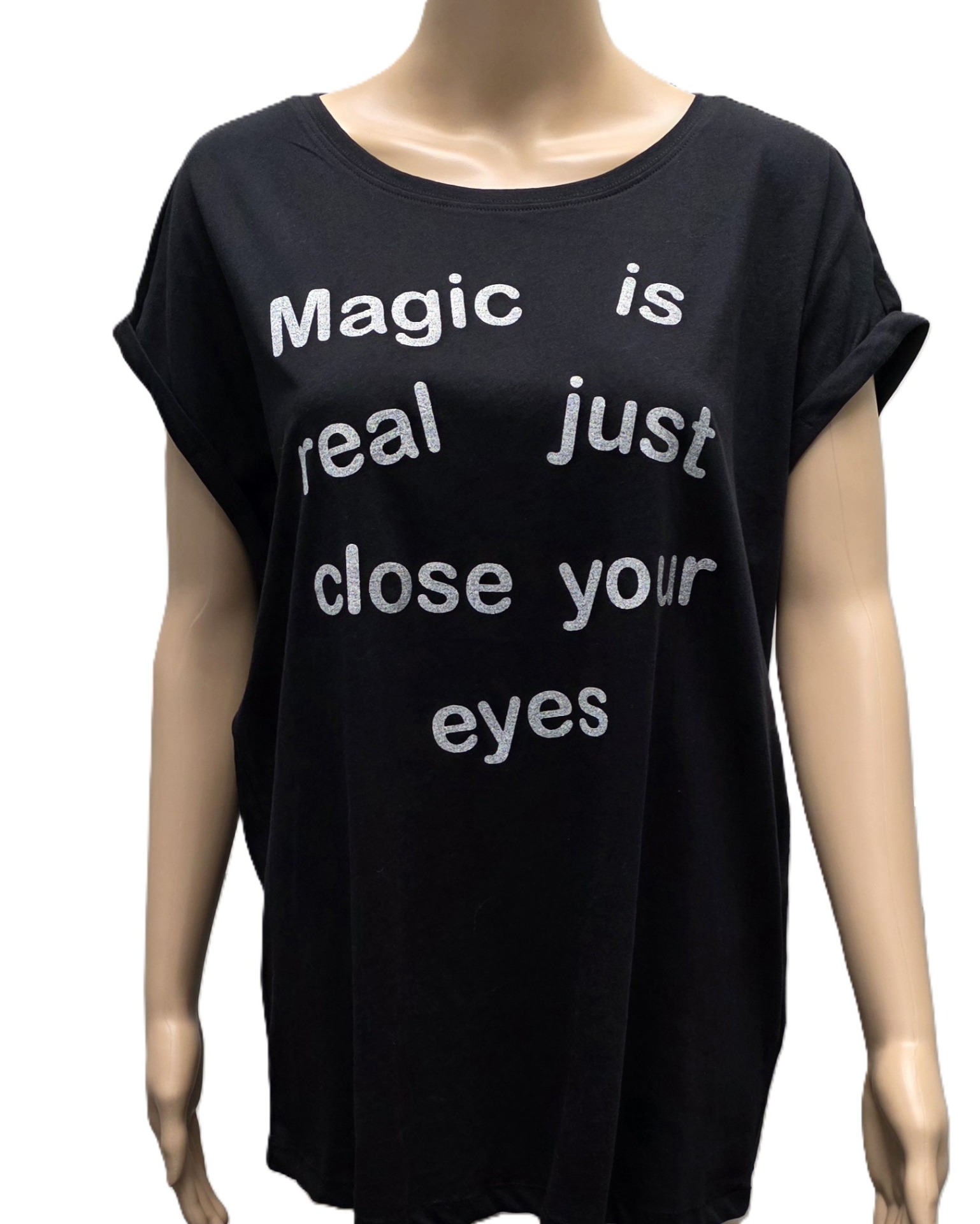Damesshirt zwart 'Magic is real, just close your eyes' maat M