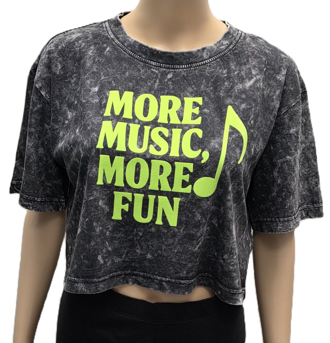 Grijs-zwart t shirt cropped 'More music, more fun' maat: small