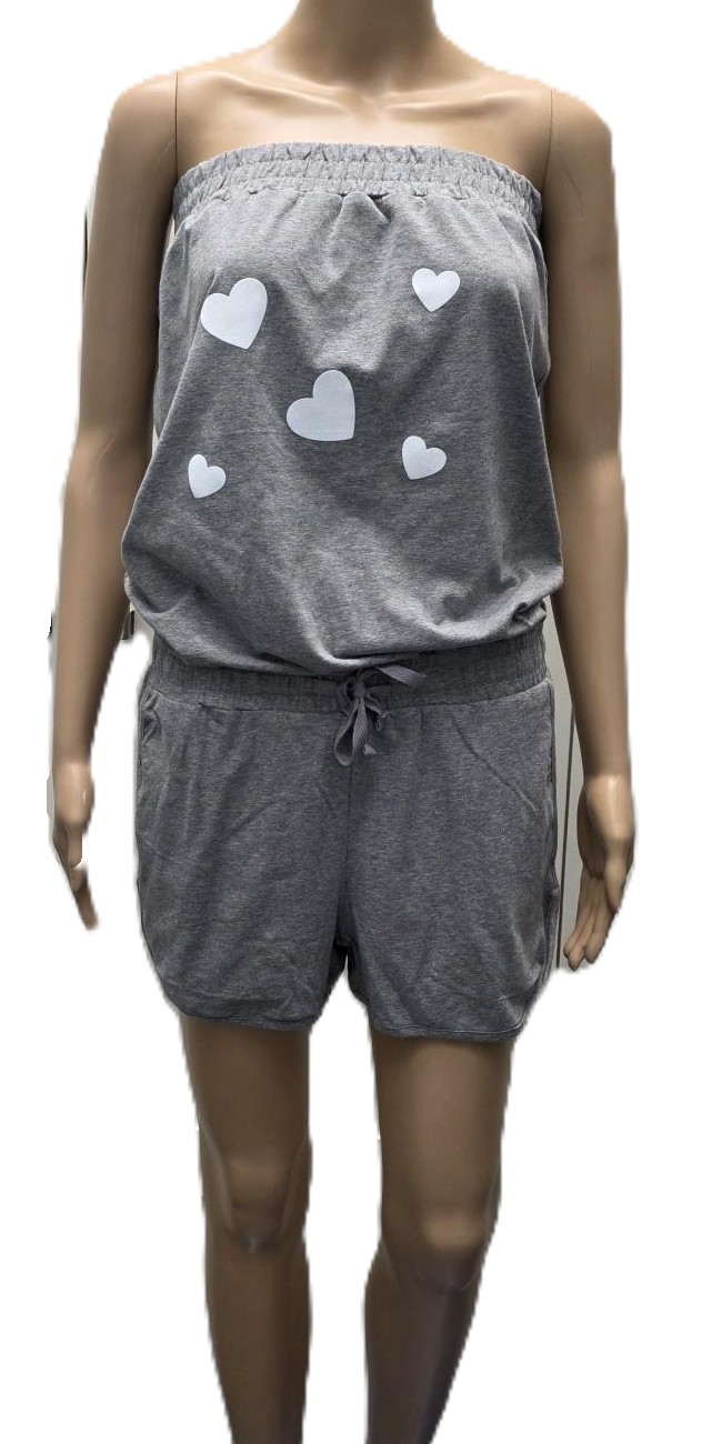 Leuke jumpsuit met zakken en met hartjes gedecoreerd (Flockprint)