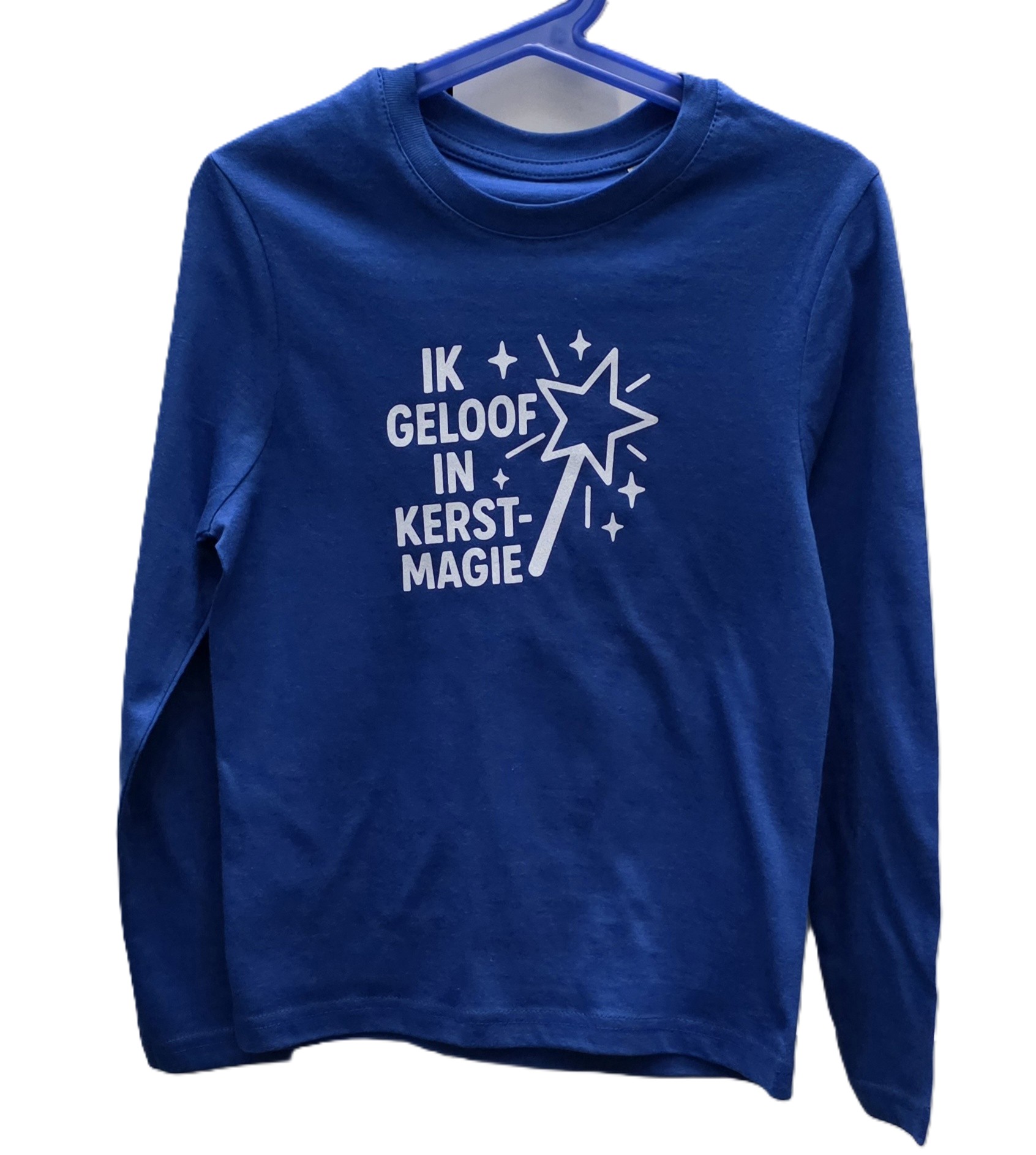 Shirt met lange mouwen blauw met witte glitterprint. Uniek stuk !