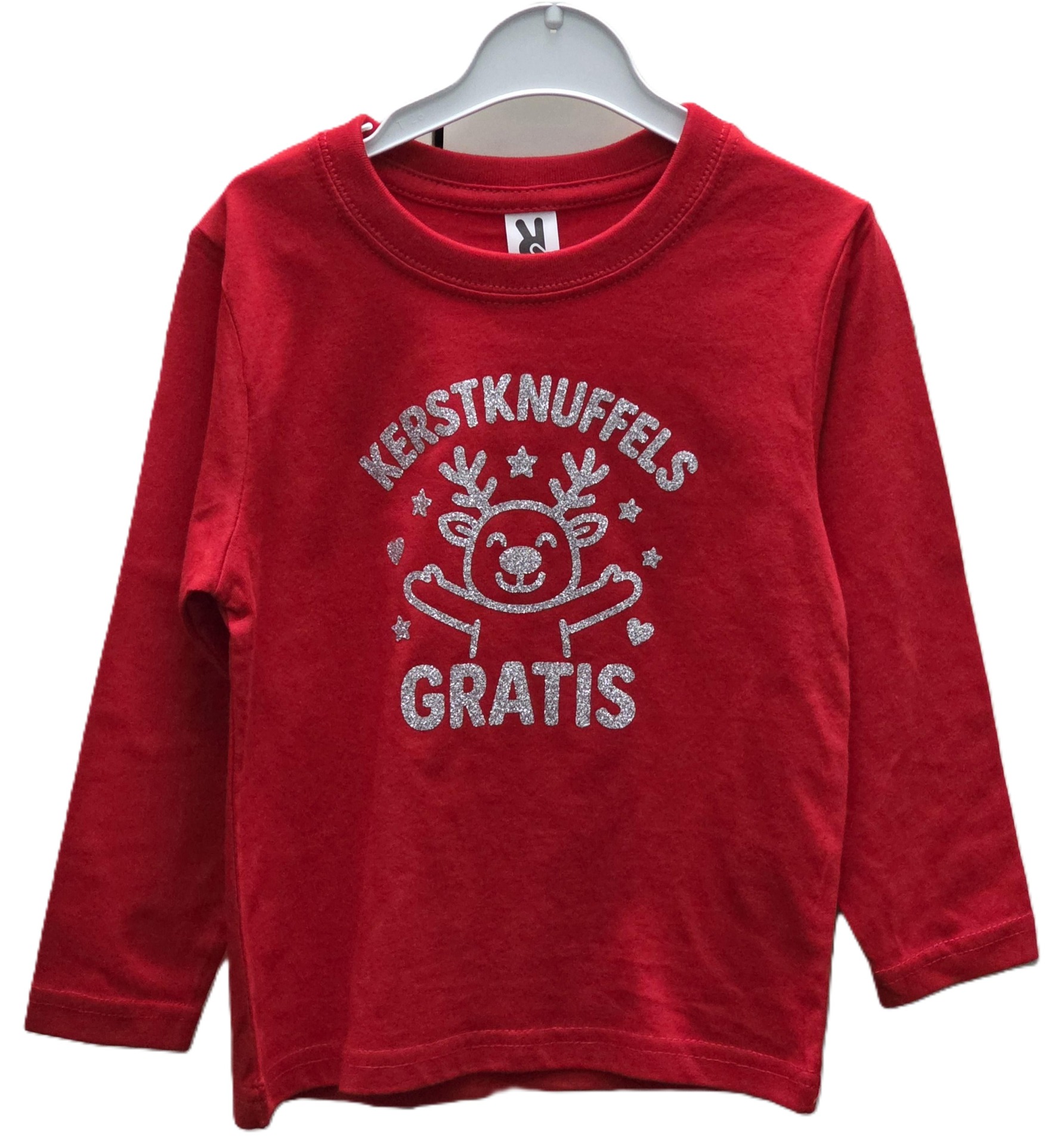 Kerstshirt rood 'Kerstknuffels gratis' 2 jaar