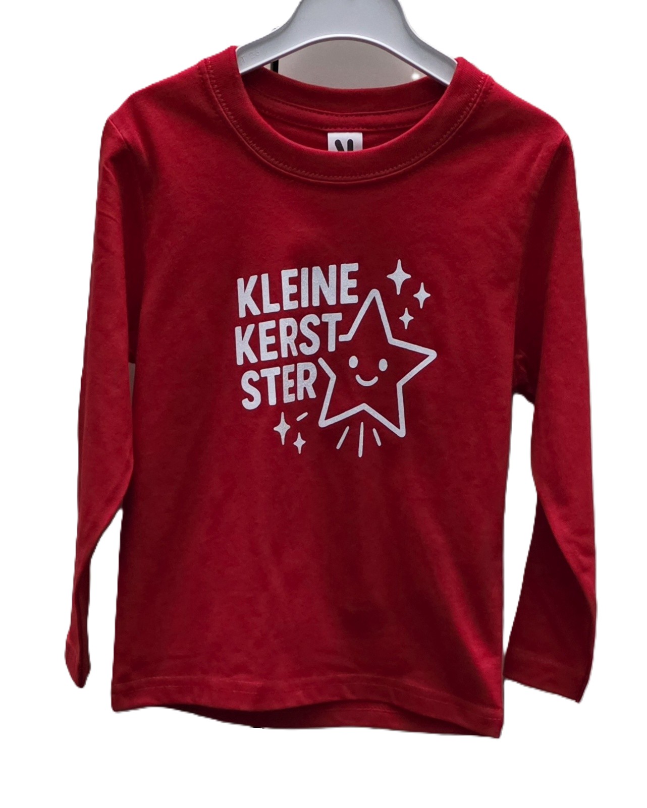 Shirt met lange mouwen rood met witte glitterprint. Uniek stuk !
