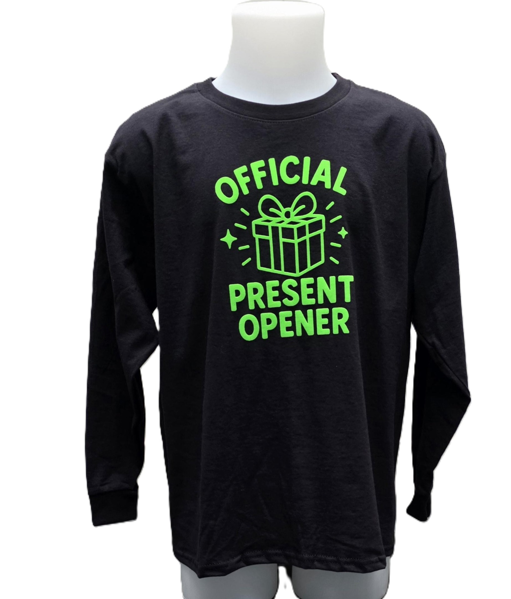 Shirt met lange mouwen zwart met groene flockprint.