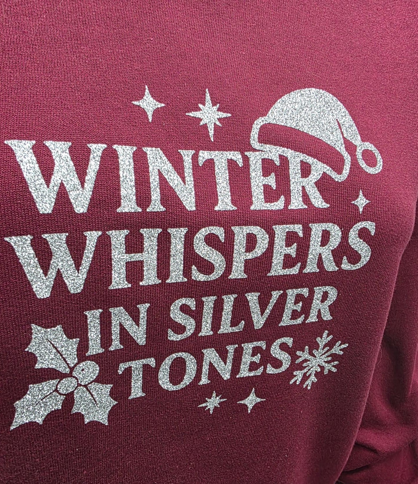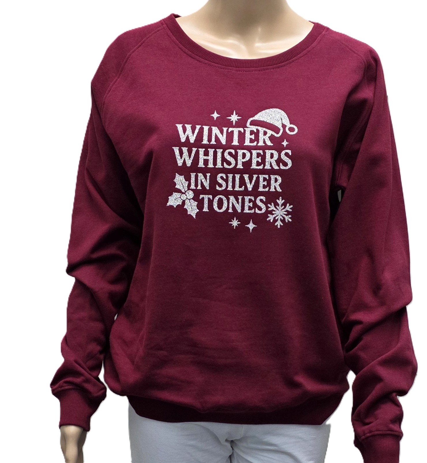 Sweater bordeaux met zilver glitterprint. Uniek stuk !