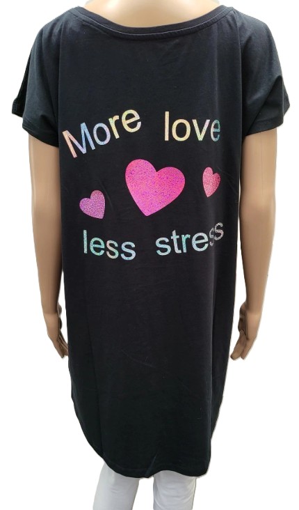 Kleedje met prints vooraan en achteraan. De prints zijn in eigen atelier ontworpen en aangebracht. Wat dit een uniek stuk maakt.