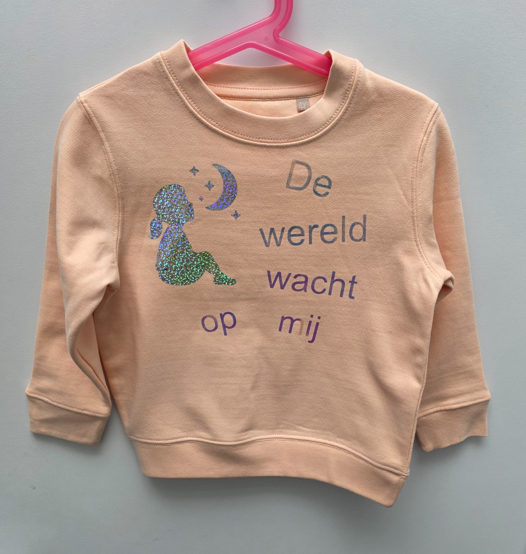 Kleutersweater 'De wereld wacht op mij' 4 jaar