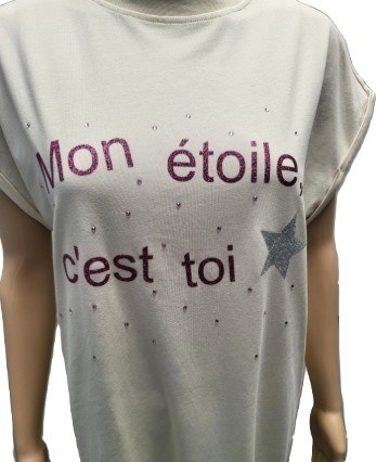 Lang kleed met split aan beide kanten , strass steentjes en glitter print : Mon étoile, c'est toi