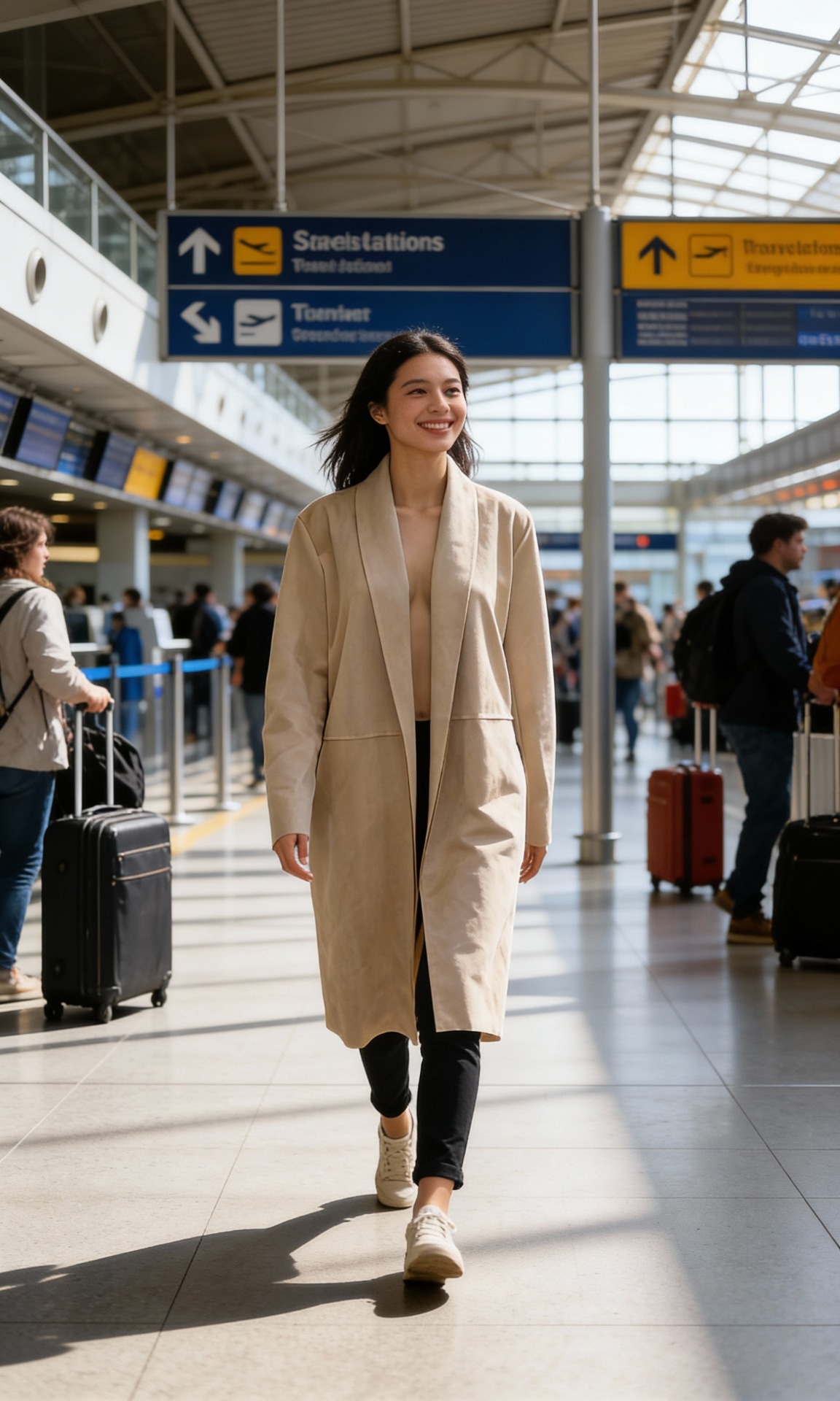 Lang vest met zakken, zachte stof in roze ,blauw, wit of beige Maat large