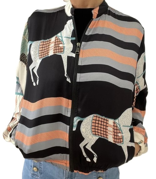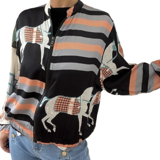 Jasje met rits zwart grijs met paarden. One size