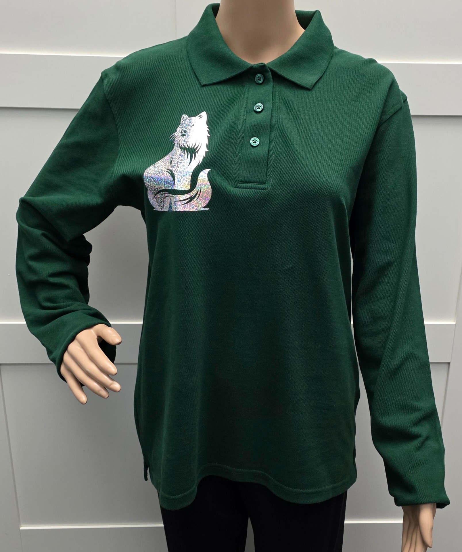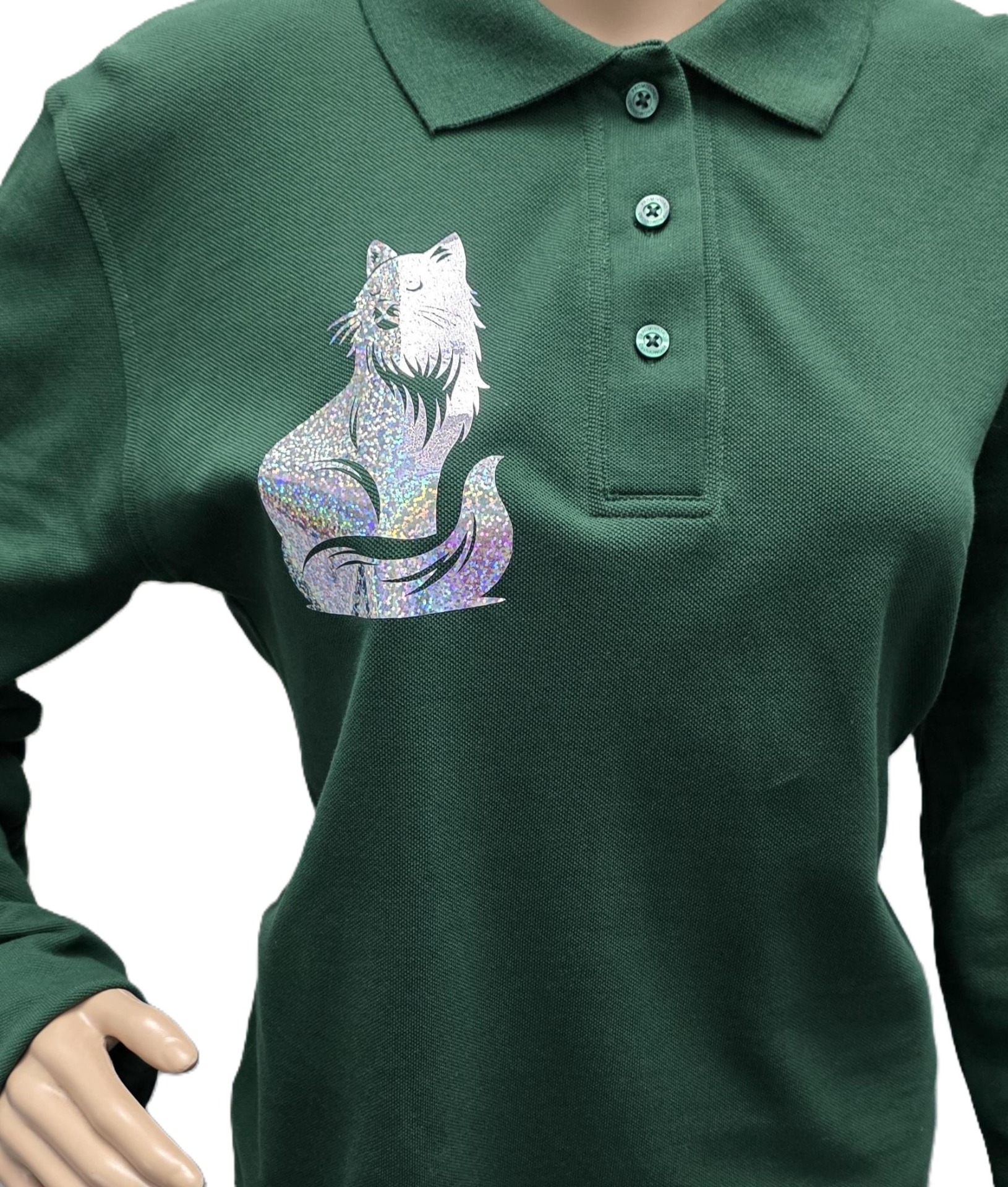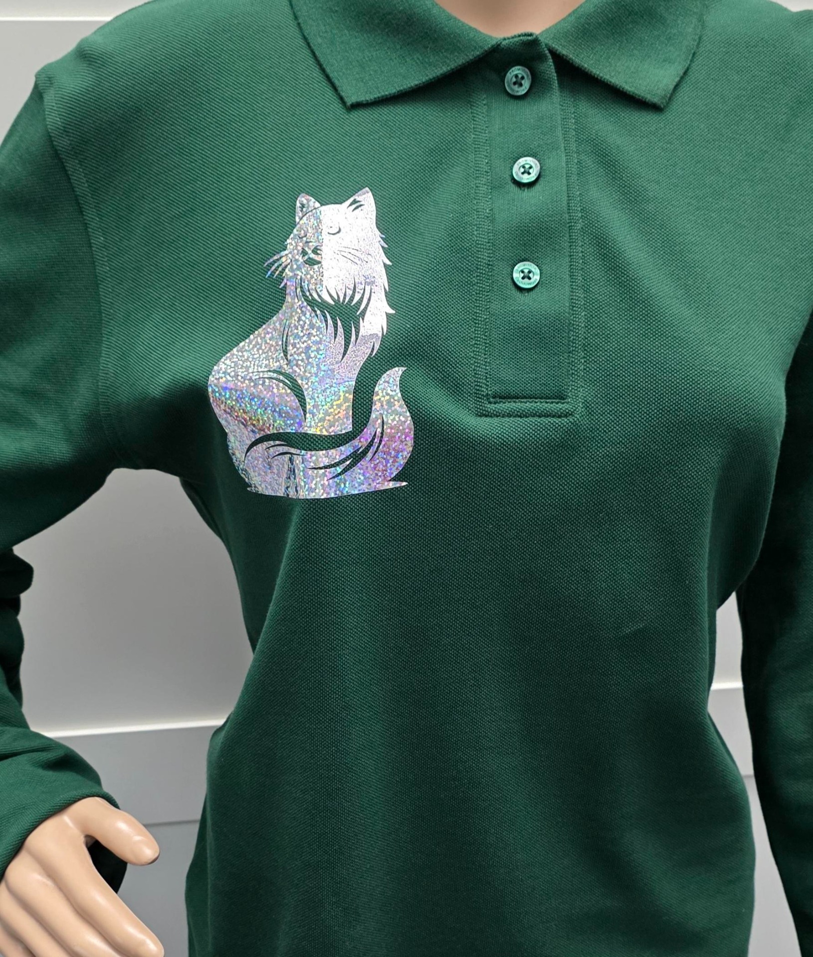 Kwaliteitsvolle polo , groen met glitterprint kat