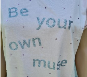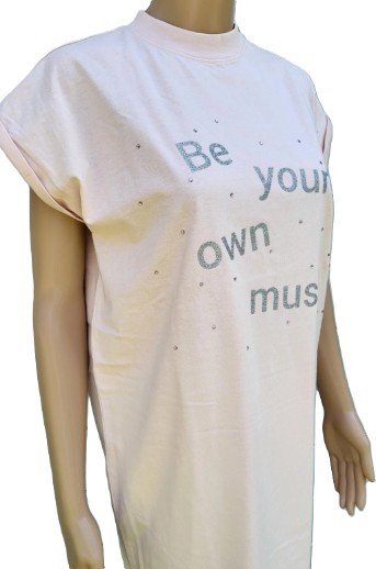 Roze kleed met zilver glitter print en roze strass. Be your own muse