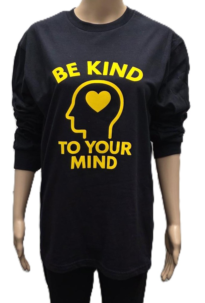 Zwart shirt lange mouwen met gele flockprint.