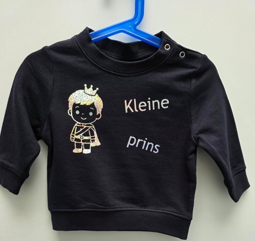 Sweater, lange mouwen, 80% katoen, 20 % polyester met zelf ontworpen print. Uniek stuk.
