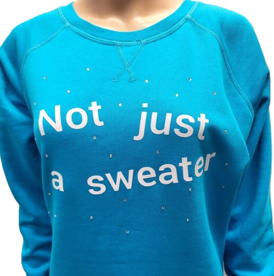 Sweater, turquoise met witte print. Not just a sweaterMaat: large