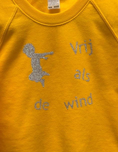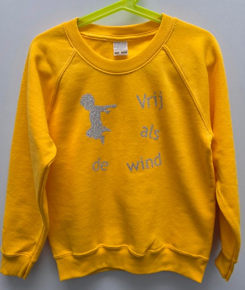Sweater, lange mouwen, 80% katoen, 20 % polyester met zelf ontworpen print. Uniek stuk.