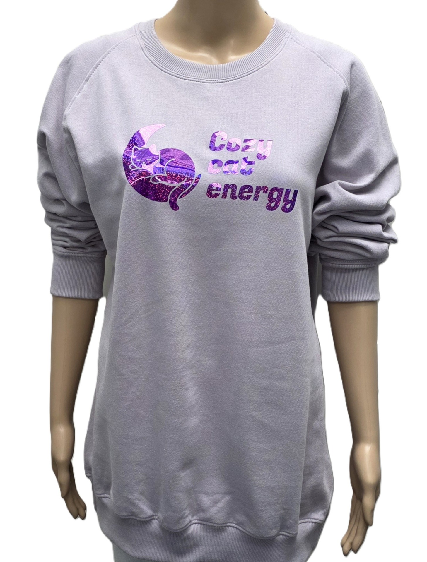 Sweater zacht lila met effectprint.