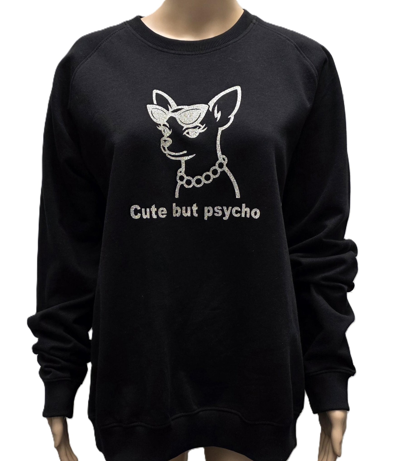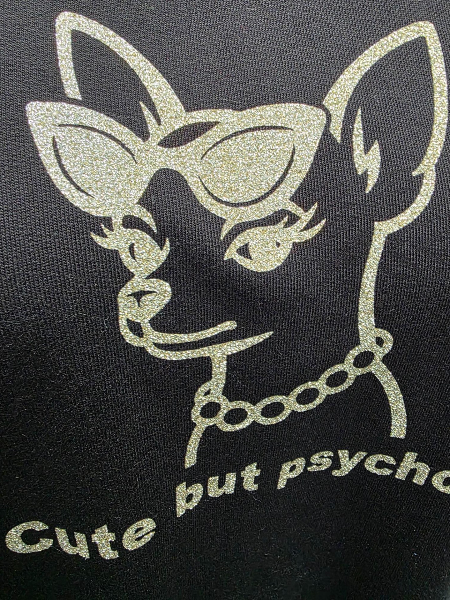 Sweater zwart met gouden glitterprint.