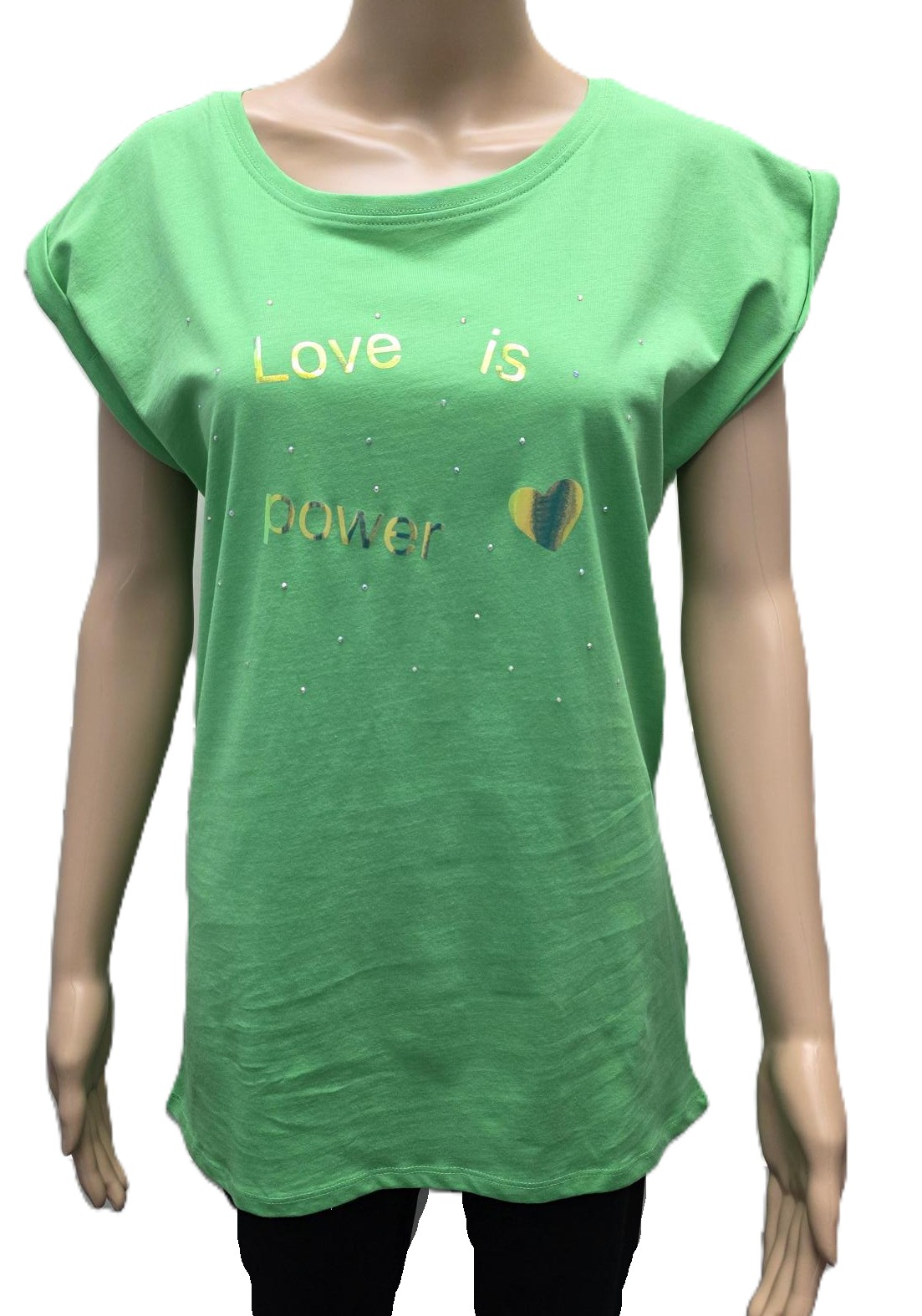 T shirt groen met effectprint en strass Maat: medium