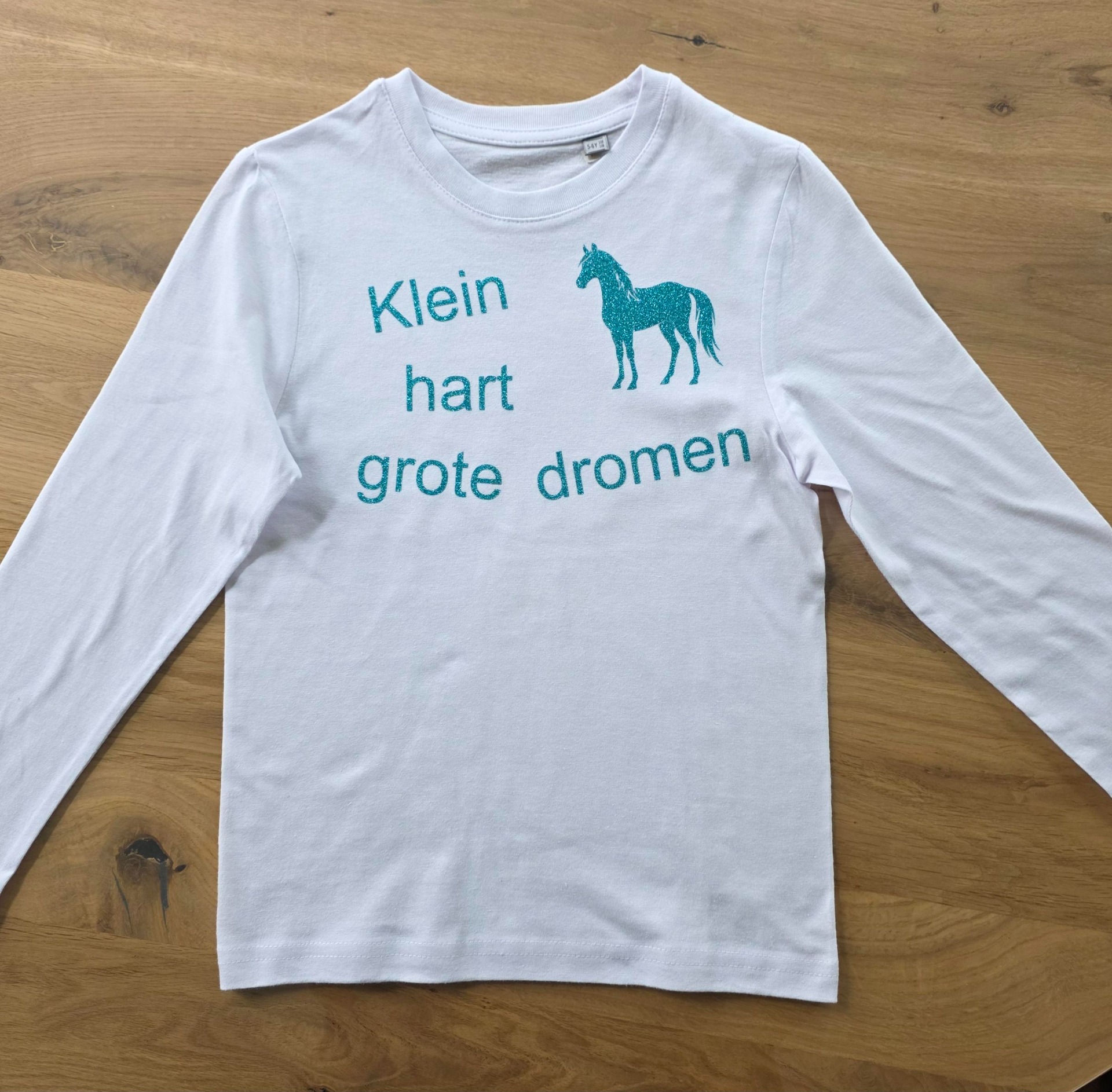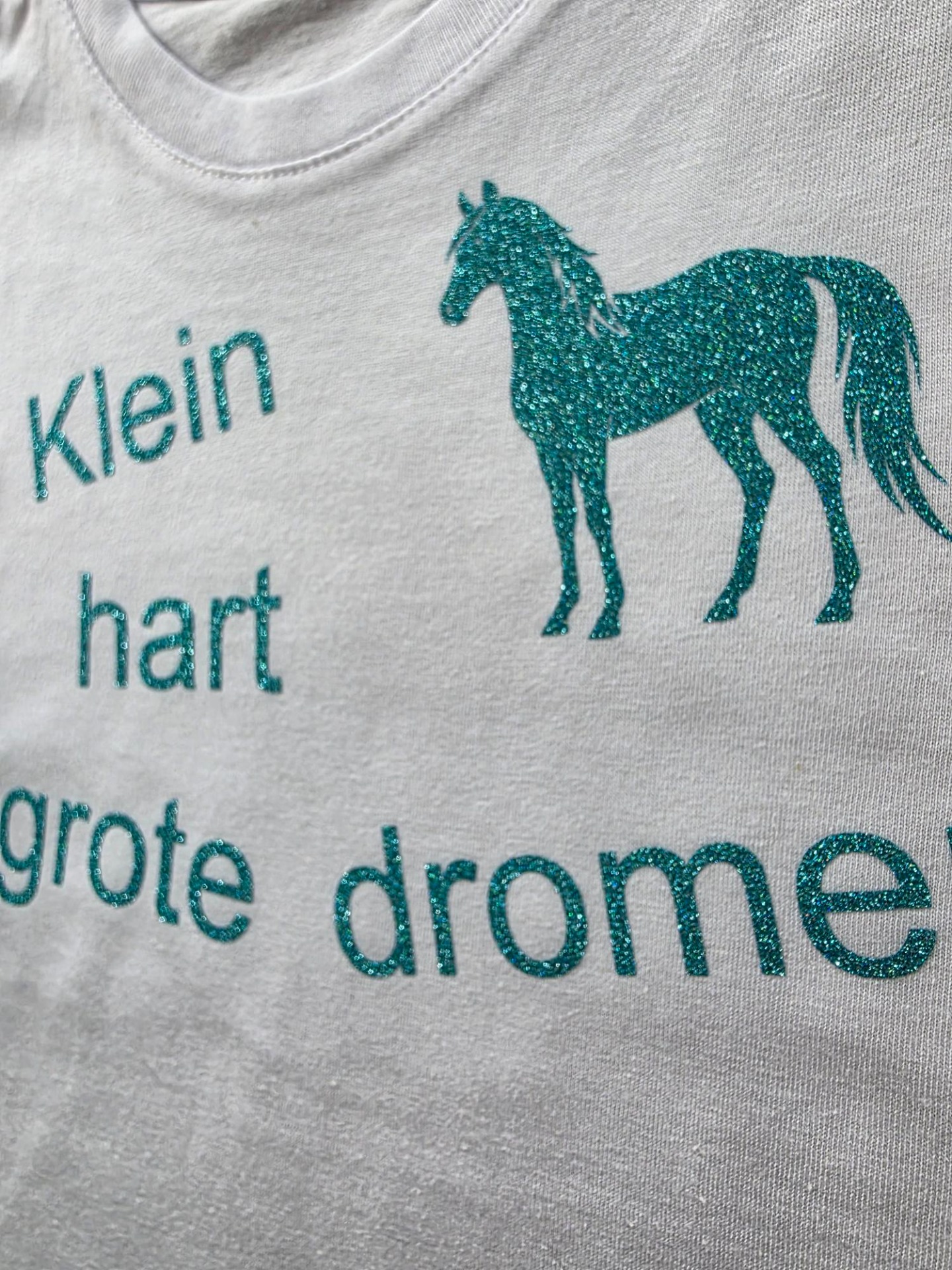 Wit t shirt met glitterprint, 100% katoen met zelf ontworpen print. Uniek stuk.