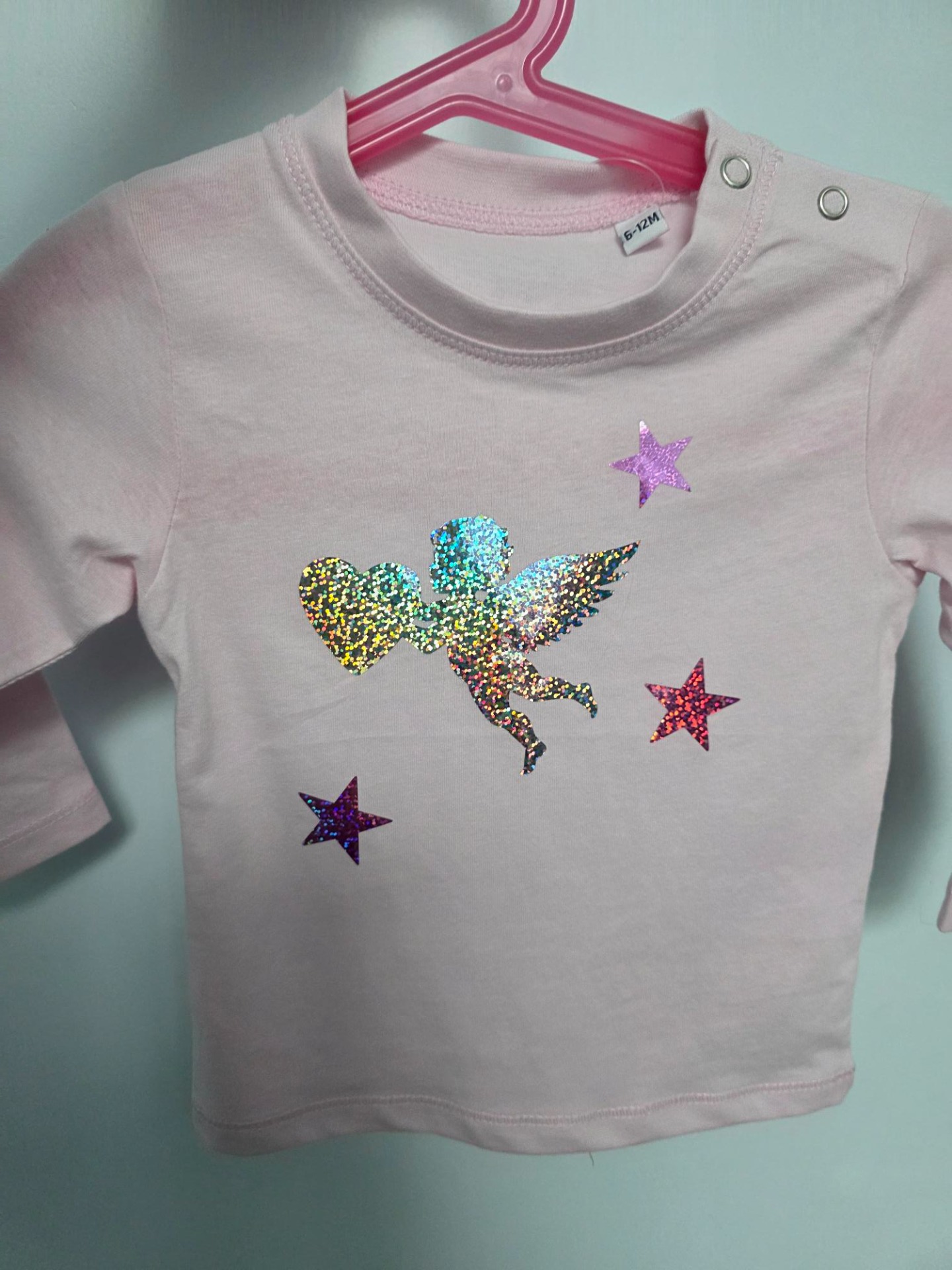 Roze T shirt, 100% katoen met zelf ontworpen print. Uniek stuk.