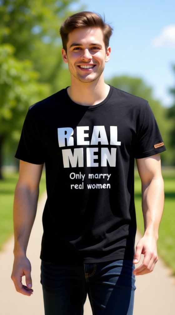 Zwart T shirt REAL MEN 'Only marry real women' met witte print