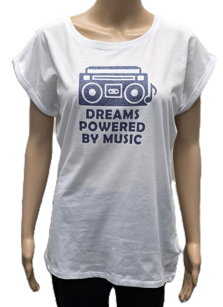 T shirt groen met blauw-grijze glitterprint Maat: small