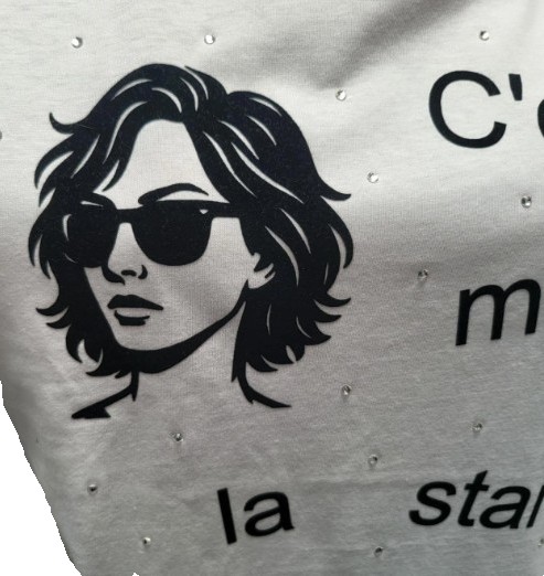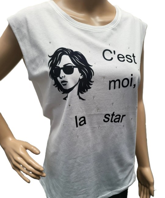 Wit t shirt met zwarte print en strass. C'est moi, la star