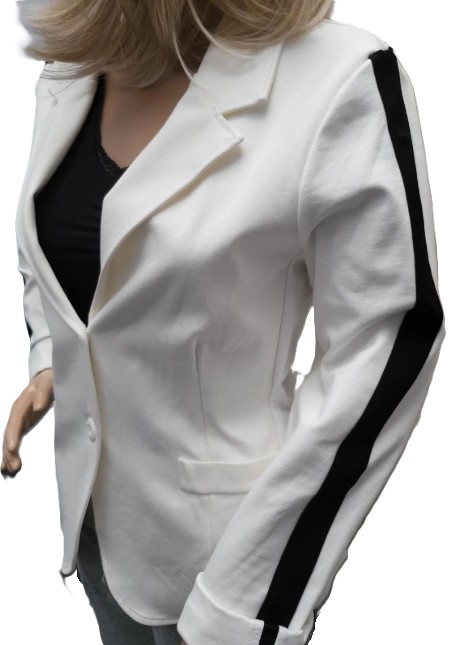Stretch blazer wit met zwarte streep op de mouwen. Maat large