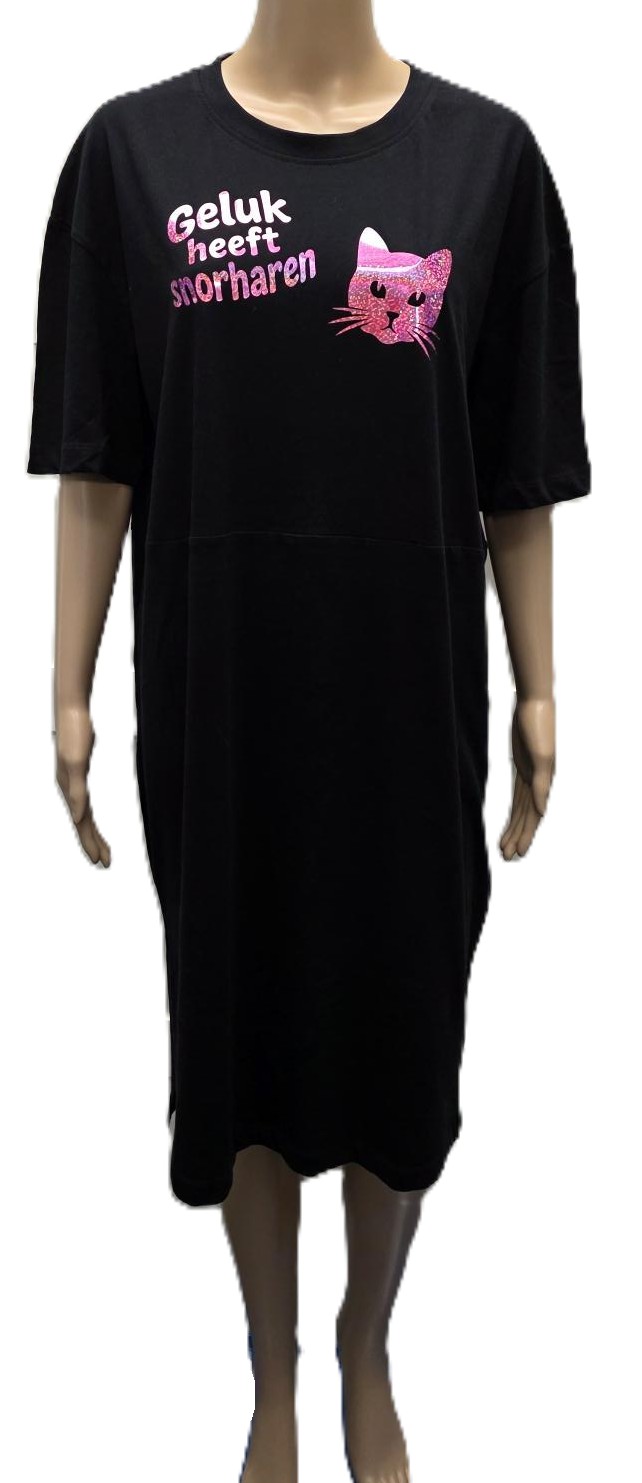 Zwart oversized kleed met kleine split onderaan links en rechts en roze effectprint