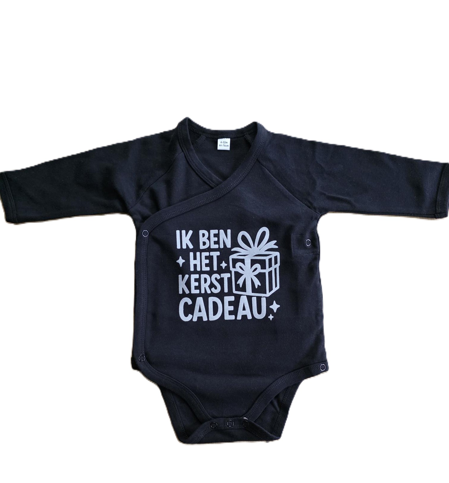 Babybody met lange mouwen zwart met grijze flockprint