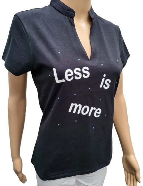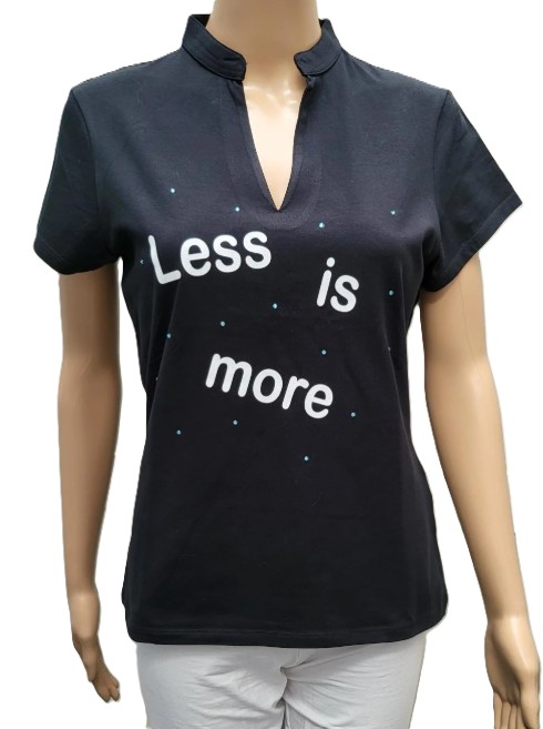T shirt zwart met print en strass. Less is more