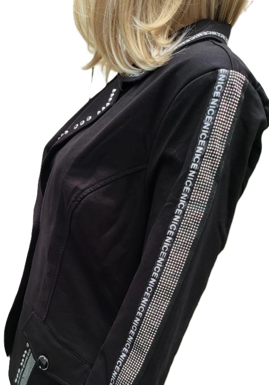Vest zwart met veel strass . Stretch stof. Verkrijgbaar in verschillende maten